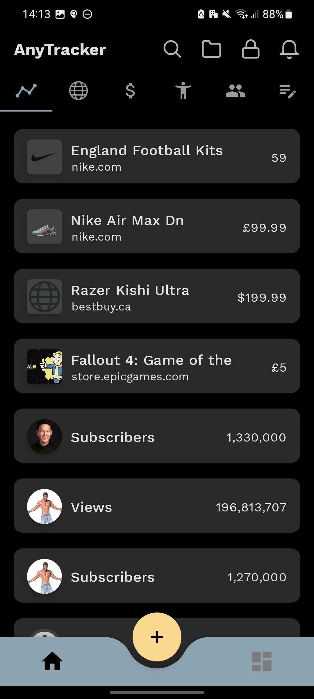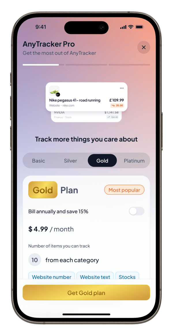 Anytracker is a flexible little app that lets you track just about anything online — prices, currency rates, crypto, headlines, parcel updates, follower counts, and more. If it has text or numbers on a website, chances are you can track it. Think of it as a Swiss Army knife for internet tracking. Used by over 10,000 users worldwide. Downloaded for over 100,000 from both iOS and Android.